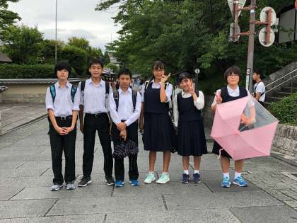 修学旅行2日め 公開日 2019/06/14 更新日 2019/06/14 できごと 高台寺を廻ってこれから清水寺に向かう班に出会いました。後ろに続くのは、京都の趣を感じることができる「ねねの道」です。雨がパラっと降りましたが、すぐに止みました。