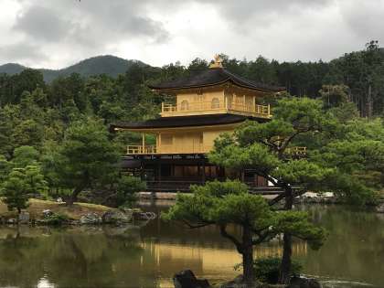 少し雨に降られましたが、新緑が鮮やかな金閣寺を拝見することができました。