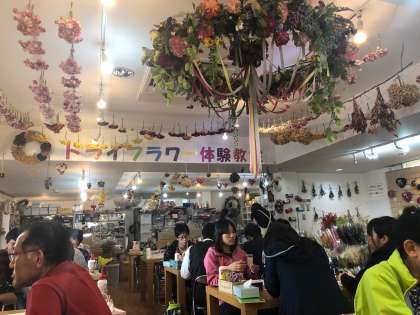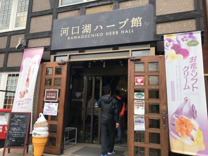 河口湖ハーブ館に来ました。しおりを作る体験をしています。