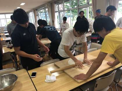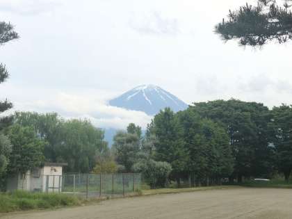 うどん作りをしている間に、さっきまで隠れていた富士山の頂上付近が見えてきました。