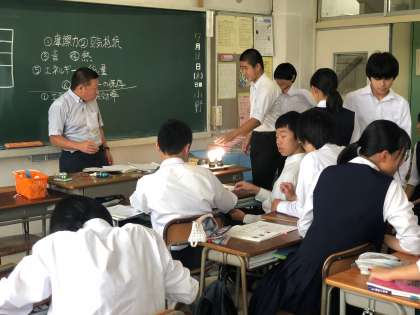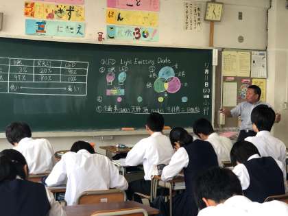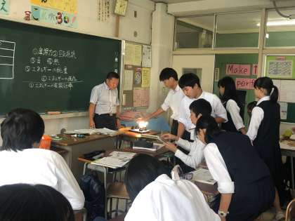 授業がんばっています(3年理科) 公開日 2019/07/11 更新日 2019/07/11 できごと 3年生の理科では、「エネルギーの保存と利用の効率」「LED照明とエネルギーの変換効率」について学習を進めていました。実際に白熱球とLED照明の上に手をかざして、その違いを体感する場面もありました。