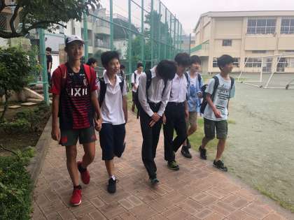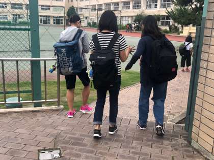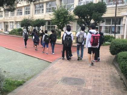 登校風景です。標準服や、部活着で登校している生徒もいます。