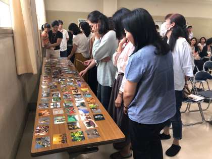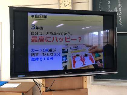 単P研修会・第2回家庭教育学級3 公開日 2019/07/13 更新日 2019/07/13 できごと 第2部のワークショップでは、4人のグループに分かれて、自分軸を確認するためのグループワークを行いました。ベースになるイメージをカードで選び、「3年後、自分はどうなっていたらハッピーか」「3年後のファミリービジョンは」というテーマで、話し合いは大いに盛り上がりました。