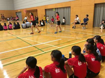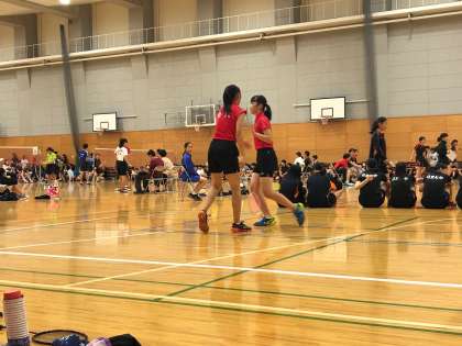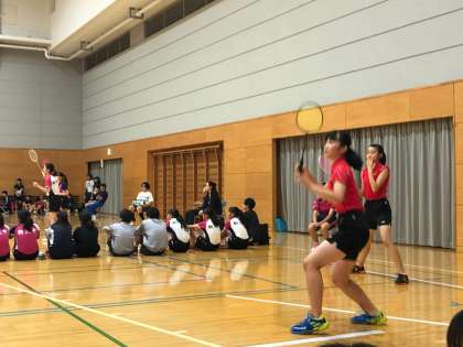 ダブルス1組目は、2セット連取で勝利しました。応援にも熱が入ります。