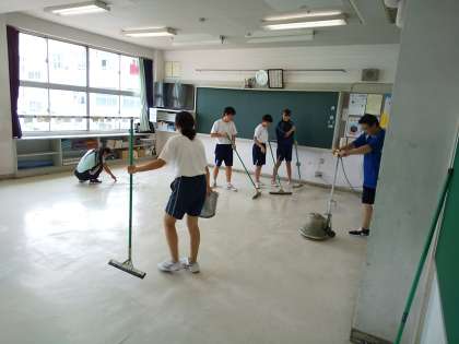 美化委員が残り各教室のワックス掛けをしています。