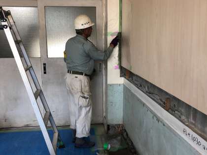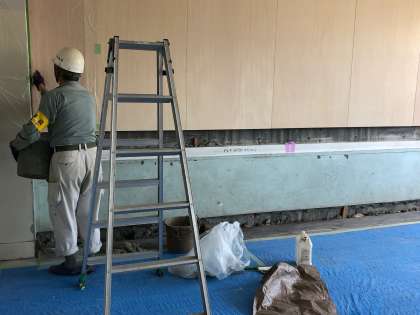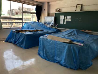 2年生の教室、工事中! 公開日 2019/08/09 更新日 2019/08/20 できごと 夏休み期間中に、2年生の教室後ろのロッカー工事が行われています。今日は、職人さんが「目地うめ」という作業をしていました。3年生の教室に設置してあるような、大きくて使いやすいロッカーが設置される予定です。楽しみですね。