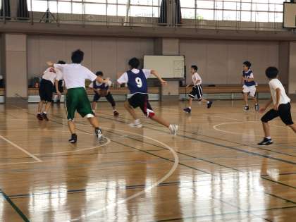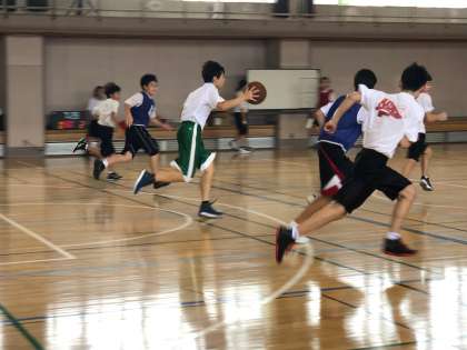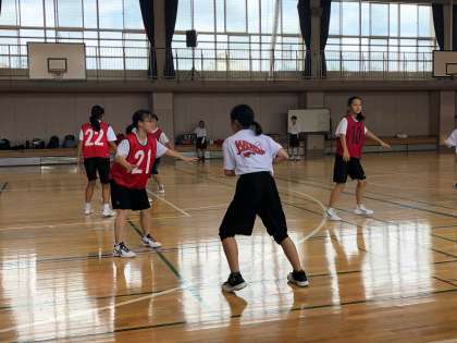 部活動がんばっています(バスケットボール部) 公開日 2019/08/21 更新日 2019/08/21 できごと バスケットボール部は、男女に分かれて試合形式の練習をしていました。男子の試合の時には、顧問の先生も試合に入り、実際に動きながら生徒に技術指導をしていました。