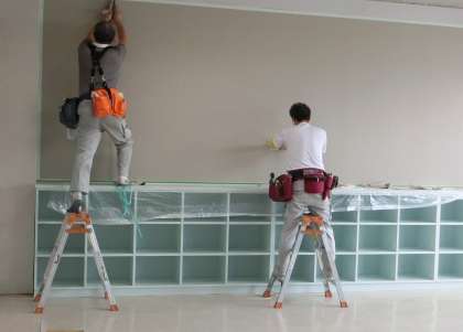 今日は、新しいロッカーの上部の掲示板クロスが貼られました。