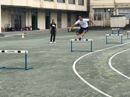 走り幅跳びとハードルの練習風景です。みんな頑張っています!
