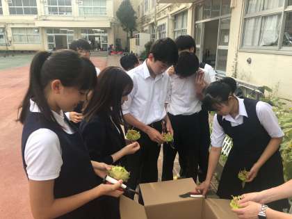「福島ひまわり里親プロジェクト」花の収穫 公開日 2019/09/05 更新日 2019/09/05 できごと 生徒会本部役員が、「福島ひまわり里親プロジェクト」として育てたひまわりの収穫を行いました。今年は7月に雨が多かったせいか、昨年にくらべると花はひとまわり小ぶりです。今後、収穫した花を乾かして種を取り、福島に送ります。皆さんの気持ちが福島に届くといいですね!