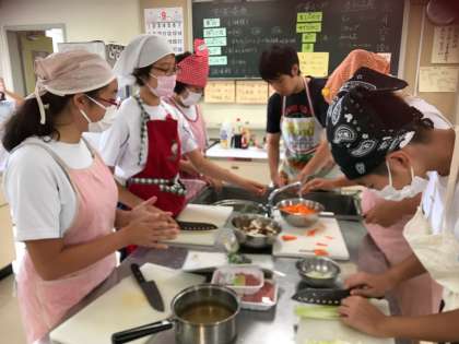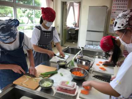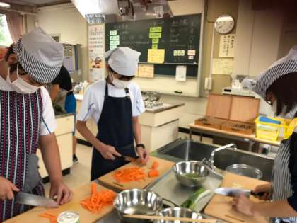 ときわ調理 公開日 2019/09/06 更新日 2019/09/06 ときわ学級 今日の調理はみんな大好き春雨麻婆、中華スープ、杏仁豆腐です。春雨麻婆はリクエスト調理で何度も選ばれている人気メニューです。人参や葱を細かく切りました。