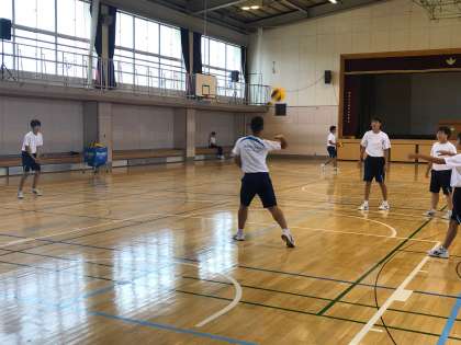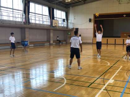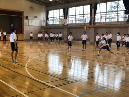 今日の練習の最後は、三段攻撃につなげるための練習でした。先生からは、「最終的に授業でスパイクを打つために、基本となるパス練をしっかりやって、ボールがつなげられるようになろう」というお話がありました。生徒たちは、熱心に授業に参加していました。