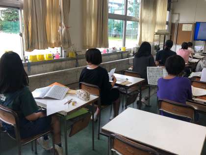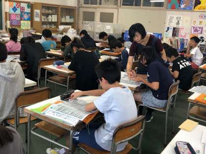 授業がんばっています(1年美術2) 公開日 2019/09/14 更新日 2019/09/14 できごと 基礎練習をした後、生徒たちは、レタリング辞典を見ながら自分の氏名をレタリングしていきます。先生からは「名前をレタリングで書けるようになると、いろいろな場面で役に立ちますよ」というお話がありました。みんな一生懸命取り組んでいます。