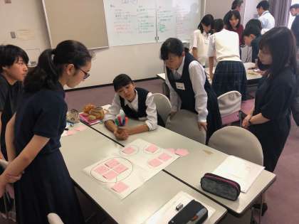 第3回生徒会サミットが開かれています。すでに1ブロックのテーマは決まり、各学校でどんな取組ができるか確認をしました。今は、KJ法を使って発表形式を考えています。