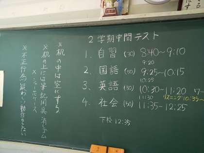 今日から2学期の中間考査か始まりました。