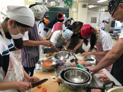 ときわ学級 調理 公開日 2019/09/20 更新日 2019/09/20 ときわ学級 甘口は2箱分、辛口は3箱分、中辛は特盛りの4箱分作りました。 今迄に無い大量の野菜を切って、へとへとになりましたが、頑張った分、美味しく仕上がりました。