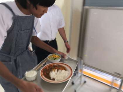 ときわ学級 調理 公開日 2019/09/20 更新日 2019/09/20 ときわ学級 職員の方々と一緒に食べたかったのですが、好評で調理室が満杯なため、カレーは職員室で食べてもらいました。 学級委員が中心となり、受付やカレー運びをしました。