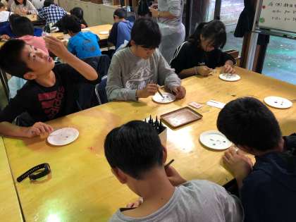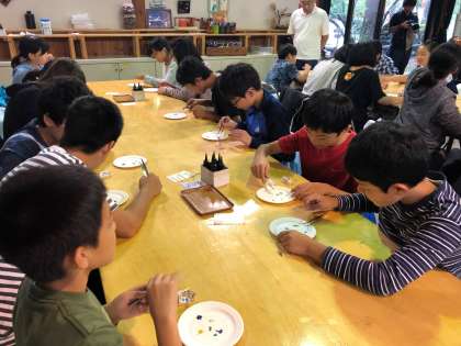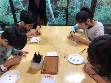 自分の決めた型に樹脂を入れ、押し花を載せていきます。どんな作品に仕上がるかな。