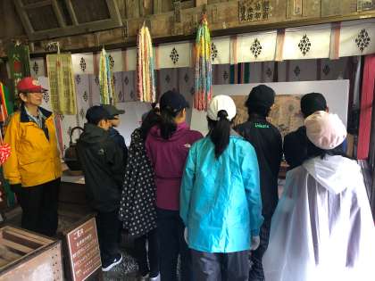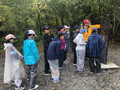 1年生河口湖移動教室(1日め) 公開日 2019/09/23 更新日 2019/09/23 できごと 前半と後半のチェンジ。ガイドさんについて、ガイドウォークに出発です。まずは船津胎内樹型を見学します。
