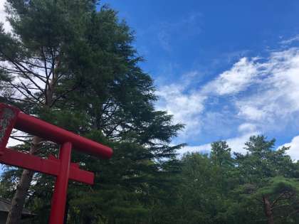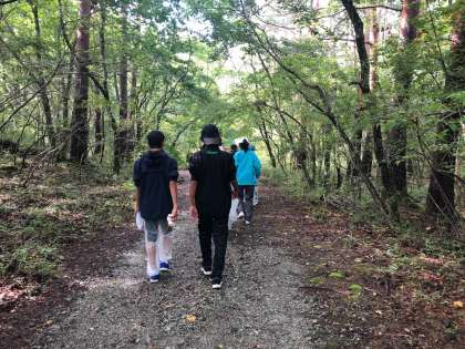 青空が広がってきました。風がザワザワ音を立てる林の中を歩きます。気持ちいいです!