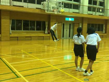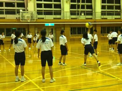 バレーボール組です。先生も頑張っています。ジャンプサーブ!