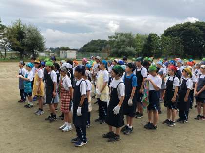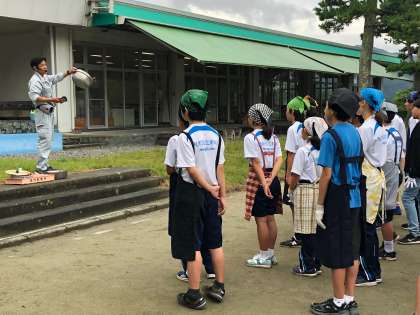 カレー作りが始まりました。まずは学園の方から作り方と片付け方の説明をしていただきます。