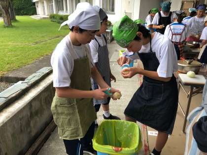 皮むき器を上手く使って野菜の皮をむきます。