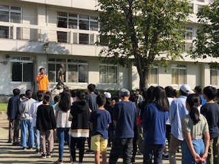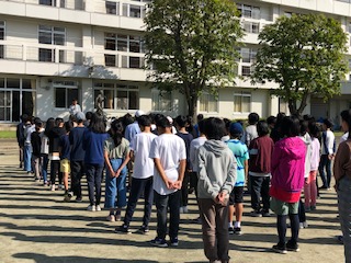 閉園式です。学園の方からのお話、実行委員長からのあいさつがありました。これからミルクランドへ向かいます。
