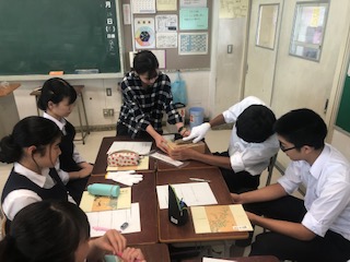 3年生が、教科「日本語」で、日本の食文化の「発酵」について学習しています。実際にかつお節削り器で、かつお節を削る体験をしていました。