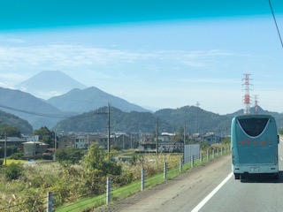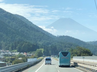 ときわ学級河口湖連合移動教室(1日め) 公開日 2019/10/02 更新日 2019/10/02 ときわ学級 富士山がだんだん大きく見えるようになってきました。写真に写っているのが1号車、弦巻中学校のバスですり