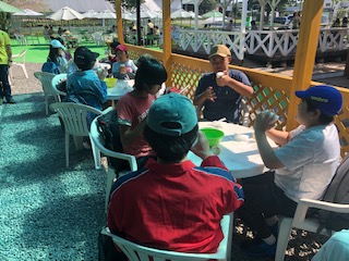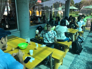 バター作り体験をしています。牛乳をひたすらシェイクします。