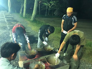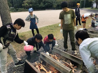 火がなかなか着かずに苦労しましたが、頑張りました。美味しいカレーが出来上がりました。