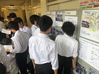 平和資料館巡回展 公開日 2019/10/08 更新日 2019/10/08 できごと 昨日から、校内で平和資料館巡回展が行われています。この巡回展は、3年に一度太平洋戦争に関する様々なパネルや資料などが校内に展示されます。