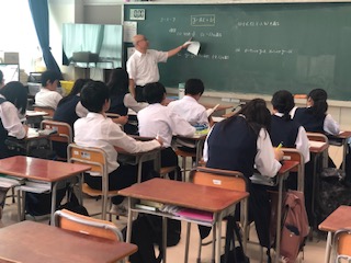 2年生の数学では、『y=a x+b』のグラフを学んでいます。基礎クラスでは、先生が黒板にグラフを投影して、問題の解き方を説明していました。