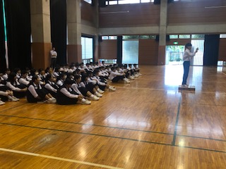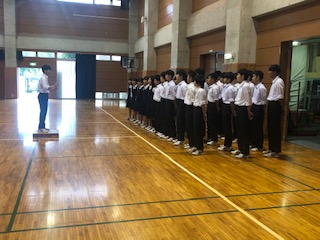 縦割り練習をしました!3 公開日 2019/10/15 更新日 2019/10/15 できごと 格技室では青組(3A、2B、1B)が練習しています。3年生が自由曲を歌っています。1.2年生は、真剣に3年生の姿を見つめています。