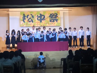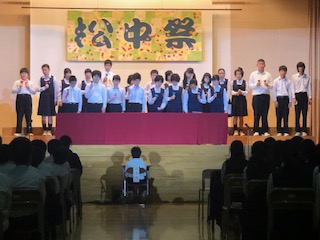 松中祭 公開日 2019/10/19 更新日 2019/10/19 ときわ学級 松中祭が開催されています。緊張のクラス合唱が終わり、ときわ学級のハンドベルの披露です。この日のために一生懸命練習してきました。どの学年も、美しい音色が体育館中に響きました。