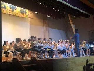 松中祭 公開日 2019/10/19 更新日 2019/10/19 学び舎 午後の部最初のステージは、松沢小の金管サークルの演奏です。2曲めの『シンクロBONーBAーYE』は拍手を入れる部分があり、会場も一緒になって盛り上がりました。