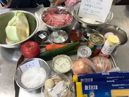 今週は、ミートソースのスパゲティとコールスローサラダに、サワーカップケーキを作りました。