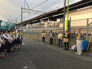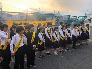 地域の方々と一緒に、桜上水駅周辺で駅前放置自転車クリーンキャンペーンを行いました。30人のボランティアの生徒たちが、駅の周辺で「クリーンキャンペーンです!」と呼びかけながらポケットティッシュを配ります。