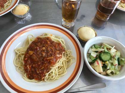ミートソーススパゲティやサラダも美味しく仕上がり、残さずきちんと食べられました。