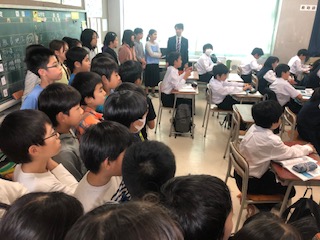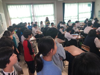 時には中学生が授業を受けている教室に入って、授業の様子を見学しました。