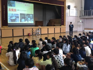小学5年生による中学校見学会5 公開日 2019/11/07 更新日 2019/11/07 学び舎 生徒会の生徒たちは、運動会や松中祭などの行事、部活動、委員会活動などについて、スライドを使いながら松沢中の紹介をしていきます。最後の質問コーナーでは、小学生からたくさんの質問が出て、生徒たちはその一つひとつに丁寧に答えていました。