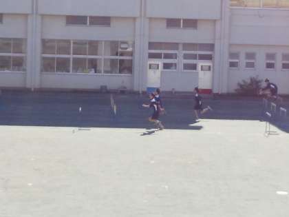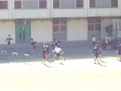 3年体育ハードルの練習 公開日 2019/11/12 更新日 2019/11/12 できごと 今日は秋らしい素晴らしい青空が広がっています。 校庭では3年生男子がハードルの練習をしています。 各コース、歩幅にあわせてハードルの間隔を変える工夫をしています。
