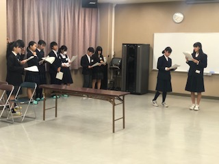 生徒会サミット2 公開日 2019/11/18 更新日 2019/11/18 できごと 松沢中学校の属している1ブロックは、大まかな台本ができて、今日は台本を持っての立ち稽古を行っていました。他のブロックも、順調に話し合いを進めています。当日の発表が楽しみですね。