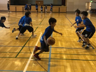 16日のバスケットボール部の練習は、学び舎小学校のバスケットボールクラブとの合同練習でした。中学生に混じって、小学生も一生懸命にバスケットボールに取り組んでいました。
