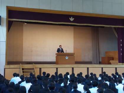週のはじめ、生徒たちもしっかりとお話を聞いていました。
