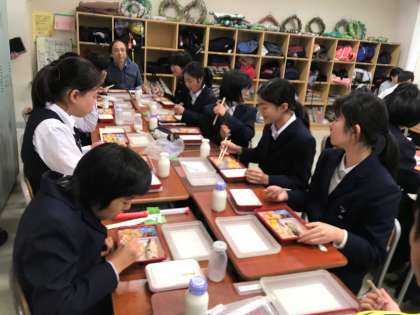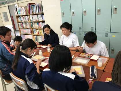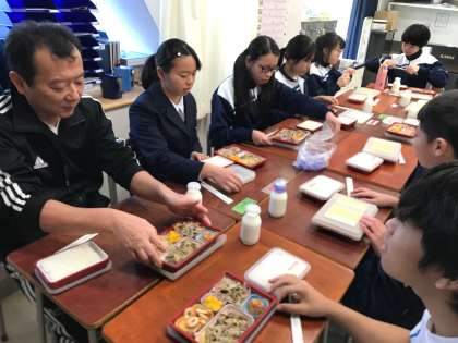 今週は、一年生との交流給食期間でした。15人の生徒が参加し、皆で楽しくお喋りしながら食事をしました。