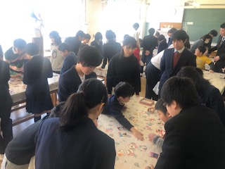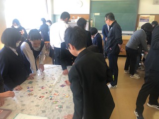 自己紹介の後は、中学生、小学生が入り混じっての「犬棒カルタ」を行いました。みんな楽しそうです!