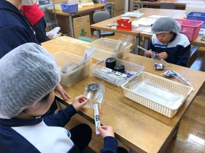 下馬福祉工房では、企業から受注を受けた作業体験や、工房で手作りし、販売しているお菓子の梱包作業を体験しました。