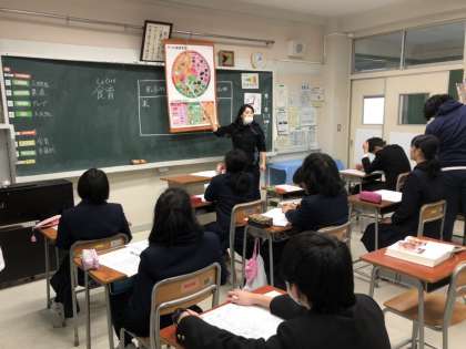 給食の献立を題材にして栄養素を分類しました。バランスの良い食生活が健康につながることを学ぶことができました。